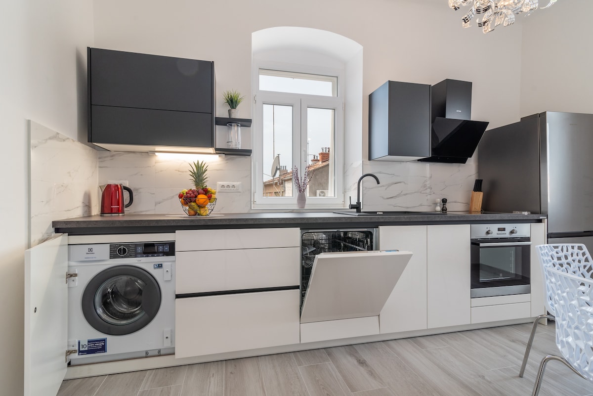 This amazing and stylish seafront apartment with a STUNNING sea view is located in the very center of the beautiful “lungomare”, the Riva promenade, at the seashore and just beneath Marjan Hill, a very popular recreational zone for outdoor activities like biking, walking and jogging. This modern 4star brand new renovated 73m2 apartment is extraordinary positioned for visiting the UNESCO site of Diocletian’s Palace, restaurants, bars, nearby beaches and other popular places in the city.