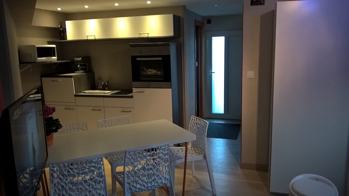 Un petit studio atypique et cosy niché sur les toits de la cité médiévale de Munster. Escapade parfaite pour les visiteurs qui souhaitent découvrir l'Alsace dans un studio de belle facture, alliant la chaleur d'un grenier de chalet en bois à l'élégance d'un design loft moderne. Le studio est entièrement équipé pour des séjours courts ou plus longs, avec une cuisine ouverte, un salon/salle à manger, un salle de bain moderne et un coin chambre et une bibliothèque.