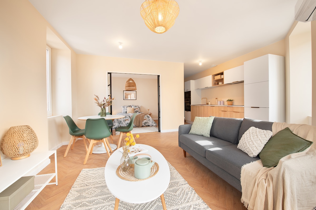 Chaleureux et minimaliste, venez découvrir notre bel appartement récemment rénové avec sa terrasse vue sur le clocher de la Cathédrale, dans un petit immeuble au deuxième étage sans ascenseur. Seule(e), en couple, en famille ou entre amis, laissez vous séduire pour découvrir notre belle ville d'Albi. Idéalement situé en plein centre ville, à deux pas de la Place du Vigan, de la Cathédrale, du Musée Toulouse Lautrec, du Palais de la Berbie et bien d'autres lieux à visiter.