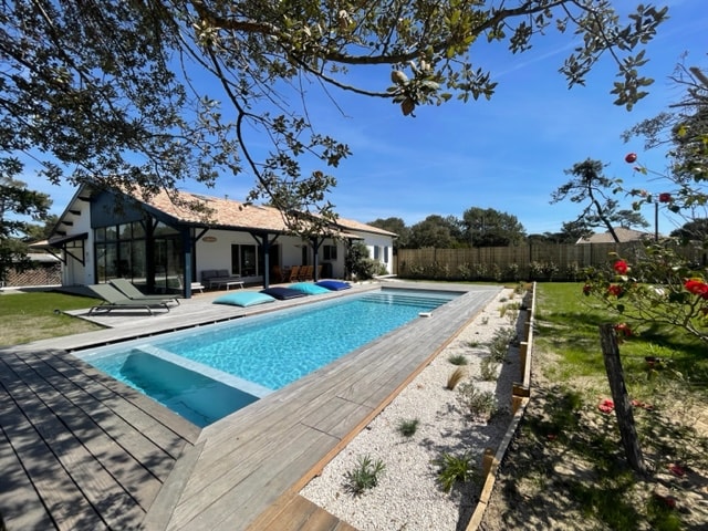 2 Bedroom House, sleeps 6, large garden, surrounded by Pine Forest. This is a lovely fully equipped, South facing house situated in Labenne Ocean, 500m from the Ocean. The open plan kitchen living room has South facing glass sliding doors, making the room very light and airy. The house was built with nothing but beautiful pine forest behind it. You can walk to the, surf spots, beach, local shops, bars, restaurants and takeaways.
