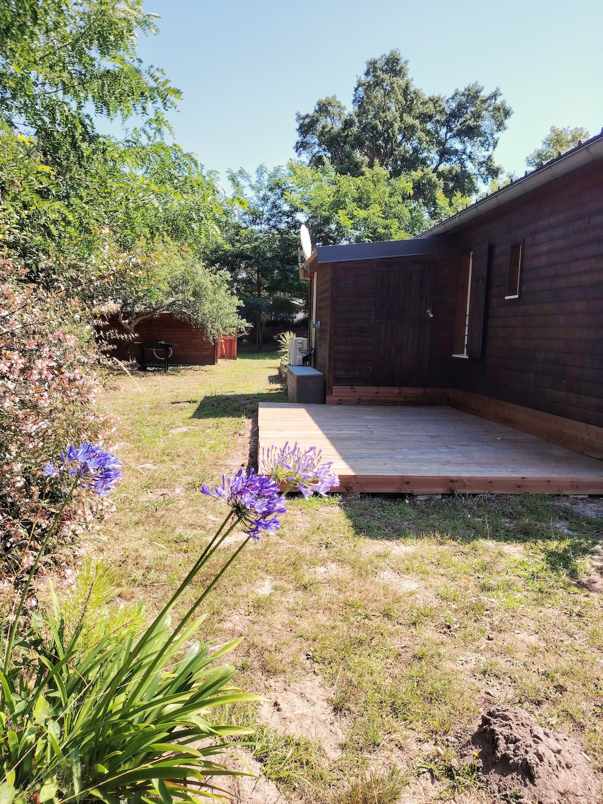 Chalet indépendant en bois, tout confort et parfaitement équipé sur terrain privé de 500m2. Avec ses 2 chambres, sa salle de bain, son salon-cuisine, sa véranda, et sa terrasse extérieure de 30m2, profitez d'un logement cosy entre pinède landaise, étangs et à 9km de l'océan (également par piste cyclable). Le logement se trouve dans le parc résidentiel très nature. Sur une superficie de 3ha, le lieu est calme et reposant. Piscine commune à disposition