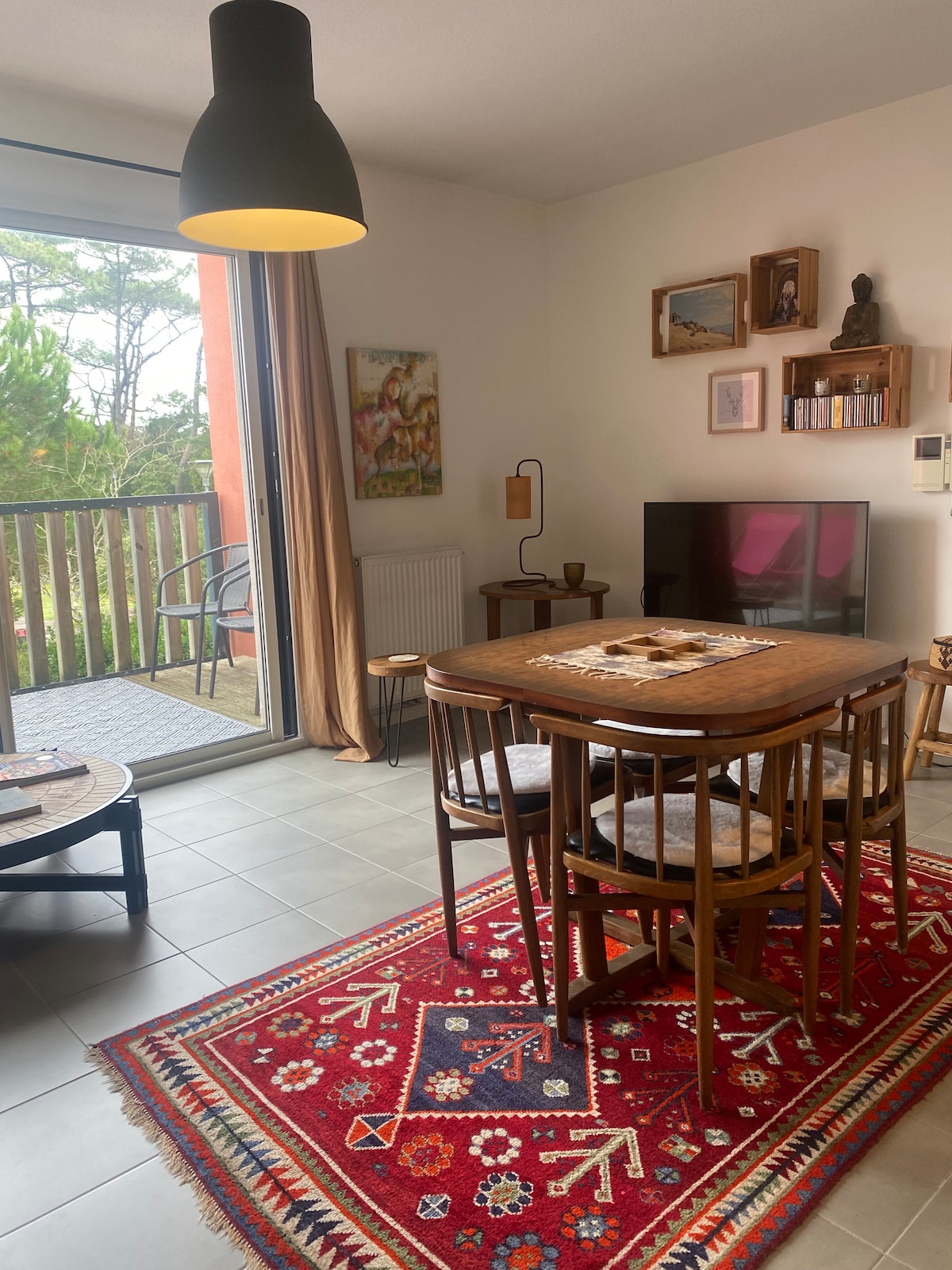 Loft studio à 20 minutes des plages landaises au cœur d’un écrin végétal calme et paisible! Ce bel espace neuf de 70m2 sous pente est conçu pour la détente... Situé à l'étage de notre maison passive en bois, lumineux avec son mur de verre, il comprend l'accès exclusif à un toit terrasse de 30 m2 pour déjeuner ou bronzer. Un loft en 5 zones : nuit (lit en 180), salon avec Apple TV, Itunes, Netflix, bibliothèque, cuisine-repas et salle de douche avec WC lave/sèche-linge. Idéal pour un couple!
