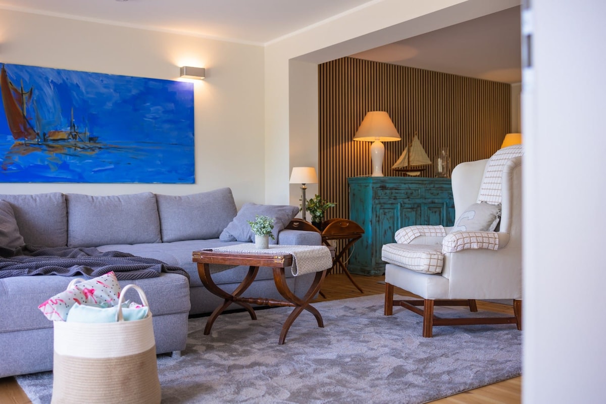 Exklusives Hausboot in fantastischer Lage. Große Panoramafenster durchfluten das Feriendomizil mit natürlichem Tageslicht. Sie haben einen einzigartigen Blick auf sie Ostsee. Auf der Terrasse und dem begehbaren Skydeck können sie fantastische Stunden und Sonnenuntergänge erleben . Eine Fußbodenheizung ,sowie eine private Sauna garantieren auch in Wintermonaten ein angenehmes Wohlgefühl. Das Hausboot ist mit Designermöbeln ausgestattet und bietet seinen Gästen insgesamt sehr viel Komfort.
