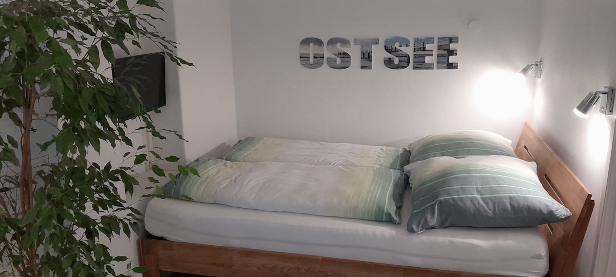 Ich biete Dir eine kleine abgeschlossene Wohnung im 2.OG meines Hauses an. Auf 56 m2 gibt es 1 Schlafzimmer, Küche, Wohnraum mit Eßecke, ein kleines Bad und eine sonnige Loggia. Du hast freien Zugang durchs Treppenhaus, kannst somit kommen und gehen, wann Du willst. Einkaufs-und Restaurantmöglichkeiten fußläufig erreichbar. Falkensteiner Strand mit Hochseilgarten und Minigolf ist nah, ÖPNV Haltestelle 2min Fußweg, Anlegestelle Fördedampfer 5min. Fußweg. Ich freue mich auf Deinen Besuch