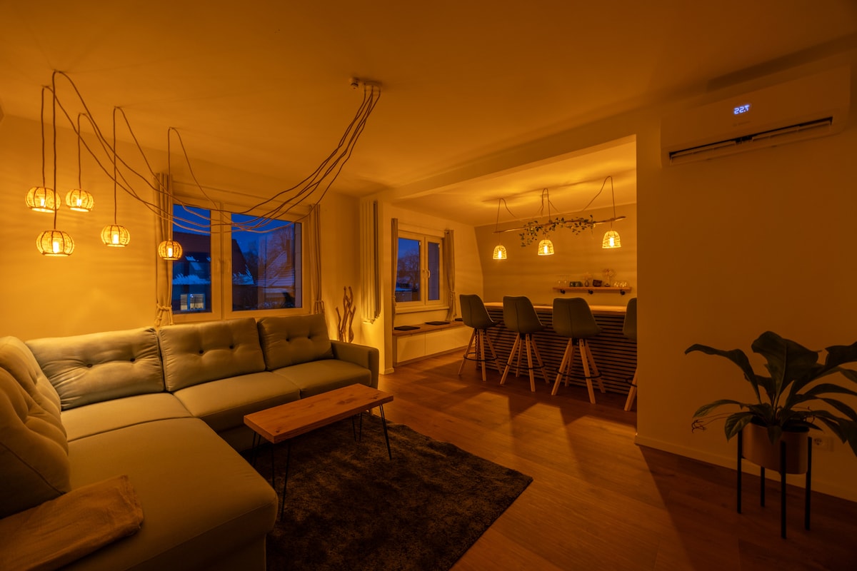 More time for all: Check-In from 10AM, Check-Out until 2PM. This stylishly furnished apartment accommodates 2 people, making it ideal for couples or friends. Here you’ll find a spacious king-size bed. The central location is perfect: you can reach the city center by car in just 10 minutes, and the beach is only 15 minutes away. Several shopping options, cafes, and restaurants are nearby and within easy walking distance.