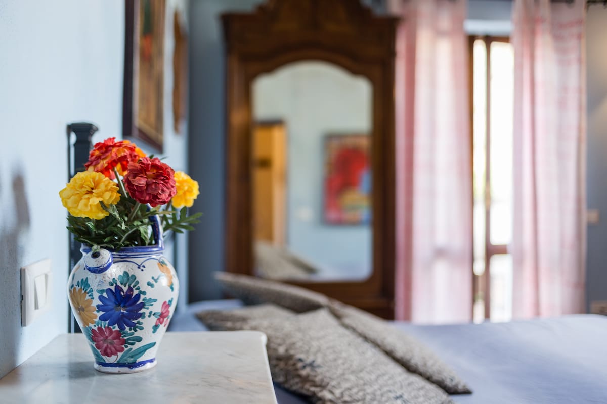 Nell’antico borgo di Vallerano, un ampio e luminoso appartamento composto da due ampie stanze, ingresso con piccolo ripostiglio e bagno, che una architetto-fotografa ha progettato per se stessa, arredato con cura per i particolari e per l’organizzazione degli spazi. Un ambiente accogliente e curato dove rilassarsi, dedicarsi alle proprie attività e partire per le escursioni nella Tuscia, consultando le guide e le informazioni sui principali luoghi di interesse disponibili nell'appartamento.