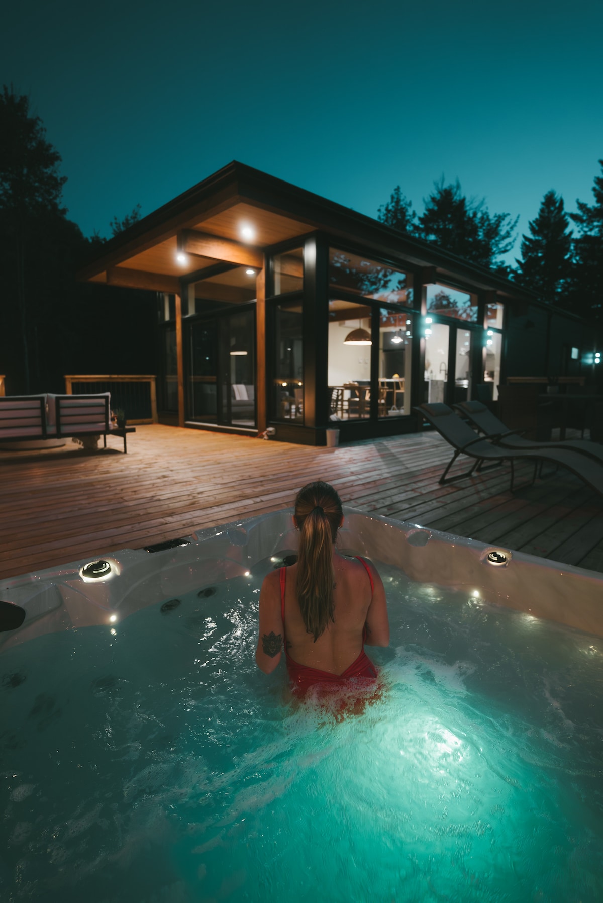 Profitez de l'effet apaisant de la nature en séjournant dans ce chalet contemporain à fenestration abondante en plein coeur de la forêt. Tremblant est magnifique, peu importe la saison. Destination plein air de rêve, vous serez à 8 minutes du Mont-Blanc et 20 minutes du Mont Tremblant. Que ce soit pour la randonnée, le ski de fonds, la raquette ou la motoneige, des sentiers sont accessibles facilement dans toutes les directions. Sans oublier le célèbre P'tit Train du Nord à 3 minutes de route.