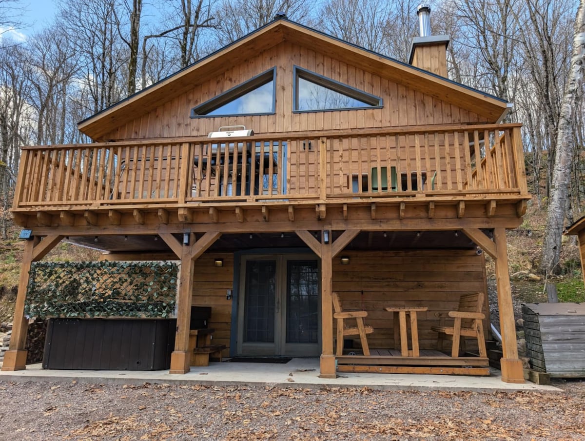 Welcome to Chalet Le Valcourt, where modernity and tranquility form the perfect alliance for an incredible stay! ➳ Maximum capacity 8 adults and 2 children ➳ 4-season spa & garden furniture ➳ Terrace & BBQ ➳ Ultra-fast wifi & workspace ➳ Incredible light ➳ Right in the forest! ➳ Table soccer and chess games ➳ 12 minutes from the Gold Oasis ➳ 8 minutes from Sentier Leadership