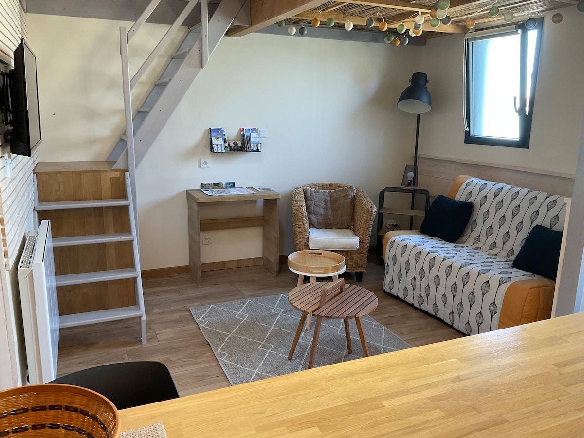 studio situé à 10mn du centre ville de La Rochelle,du vieux port, du pont Île de Ré. Possédant une entrée indépendante, il est composé d'une pièce de vie avec un lit 140x190, kitchenette équipée, TV, dressing, salle d'eau indépendante. Commerces et bus de ville à proximité ( Direct pour Vieux port, plage des Minimes ou centre ville). Attention, le linge de toilette et les draps ne sont pas fournis. Le ménage doit être fait à la sortie (en option 15€ à préciser lors de la réservation).