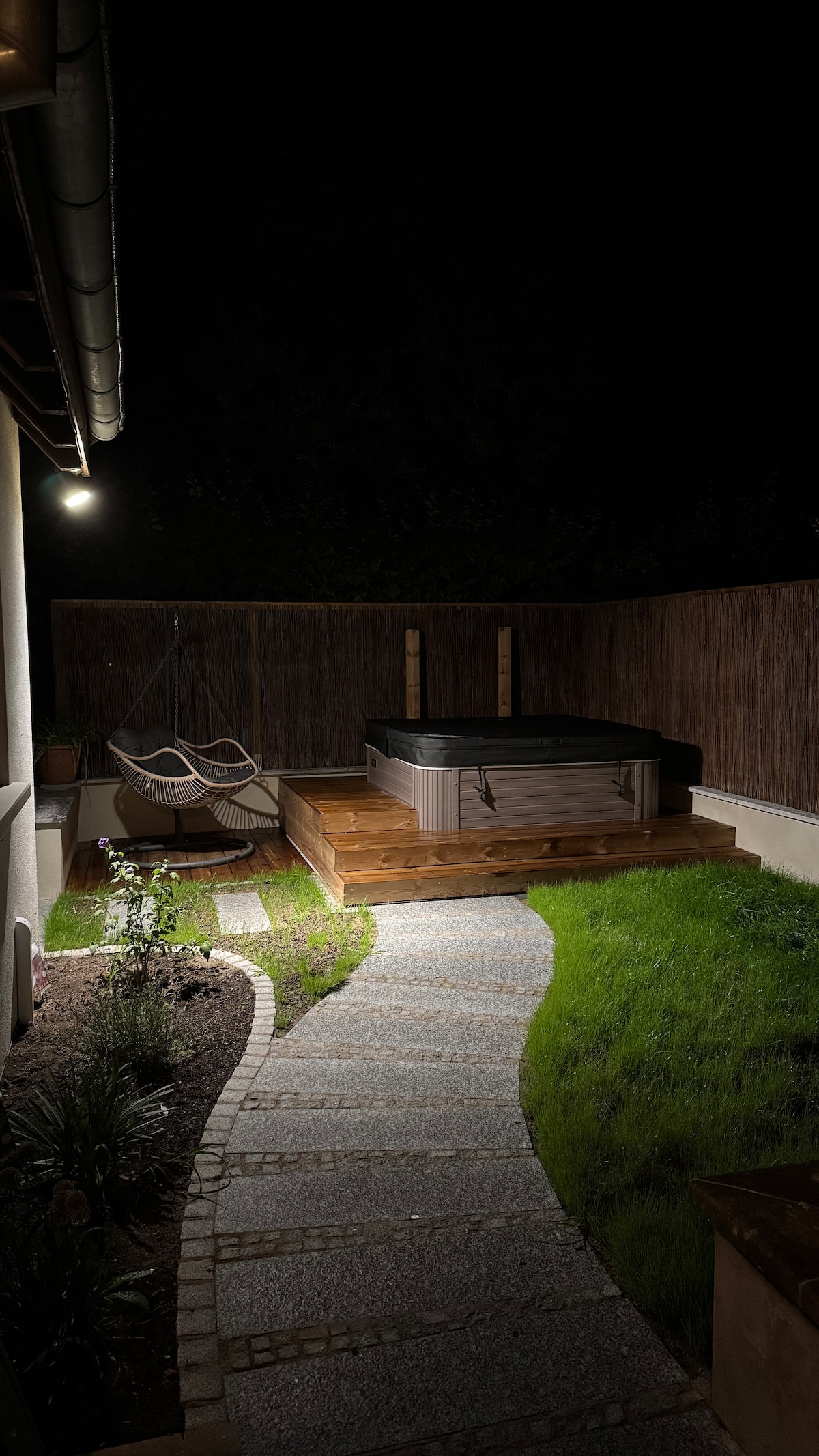 带舒适露台和私人按摩浴缸的小屋