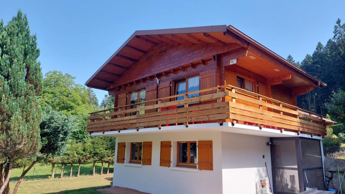 Chalet moderne et cosy au coeur de la montagne Vosgienne. Vue imprenable sur l'ensemble du domaine de ski alpin de Gérardmer et à 100m des pistes de ski de fond. Idéal pour la randonnée. Sur un terrain de 2500m2 vous aimerez la vue et la tranquillité du lieu à 5 minutes du centre ville. Grand salon-séjour, avec poêle à bois, cuisine ouverte tout équipée, avec à l'étage 3 chambres et 1 sdb tout confort. Terrasse plein sud. Parking privé 4 vl, local fermé pour ranger skis, vélos, motos, etc…