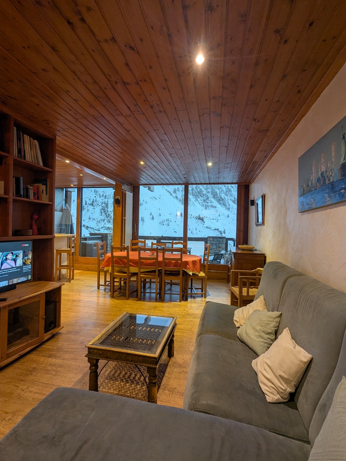 Au centre de la station, vous pourrez partir skier, vous promener sur le lac, aller boire un verre ou dîner sans toucher à la voiture. Les bus gratuits vous permettent d'aller à Val Claret (cinéma) ou au Lavachet, voir plus bas, si vous voulez changer d'environnement. Un casier à skis est à votre disposition. 6ème étage, attention l'ascenseur ne dessert que le 5ème, un étage à pieds. Depuis la prise des photos, l'ameublement a été amélioré, notamment les rideaux ! Photos plus actuelles à venir.