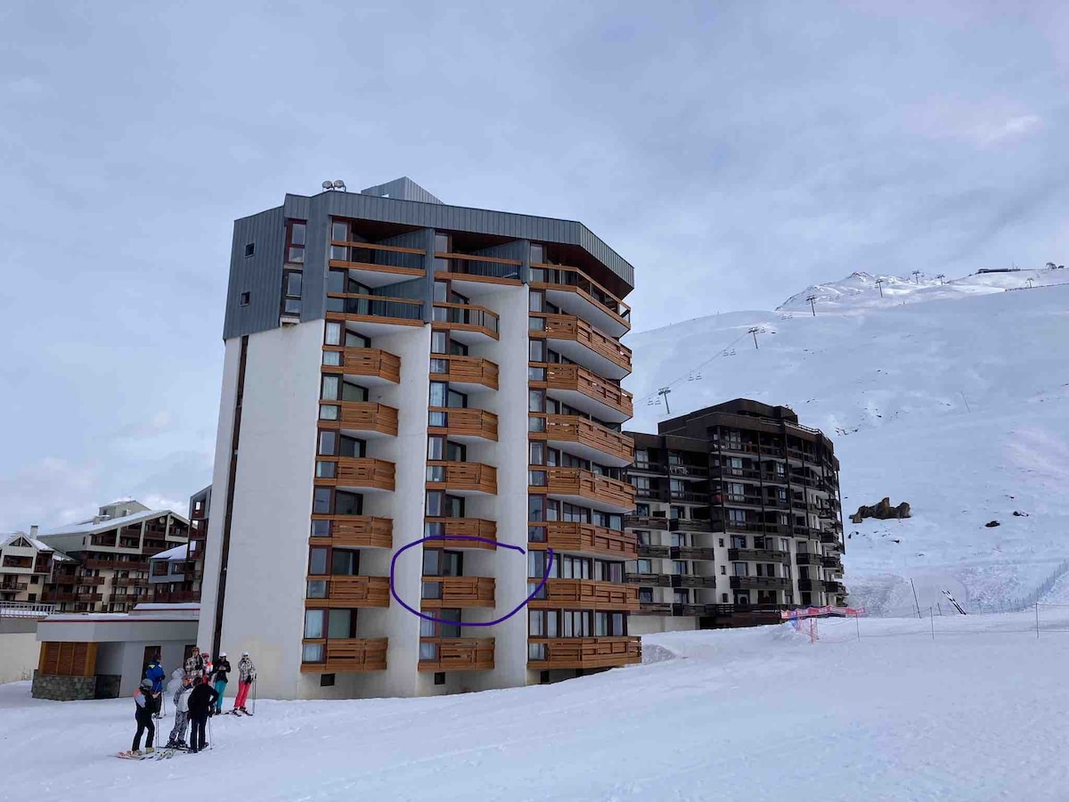 Bel appartement de 45 m2 pour 5/6 pers. Rés "Les Hauts du Val Claret B"-3e étage (asc). 1 grande chambre avec 1 lit simple et 1 lit superposé. 1 grand salon avec 1 canapé lit 2 places (160×200) et 1 canapé lit 1 place, grand double balcon avec vue superbe, TV (143cm), donnant sur cuisine semi-fermée. Equipée plaque 3 feux,four,frigo,LV,cafetière,grille pain+batterie complète. SdB refaite+sèche cheveux. WC séparés. Casier dans local pratique, départ/retour SKIS AUX PIEDS TS à 25m, ESF à 40m
