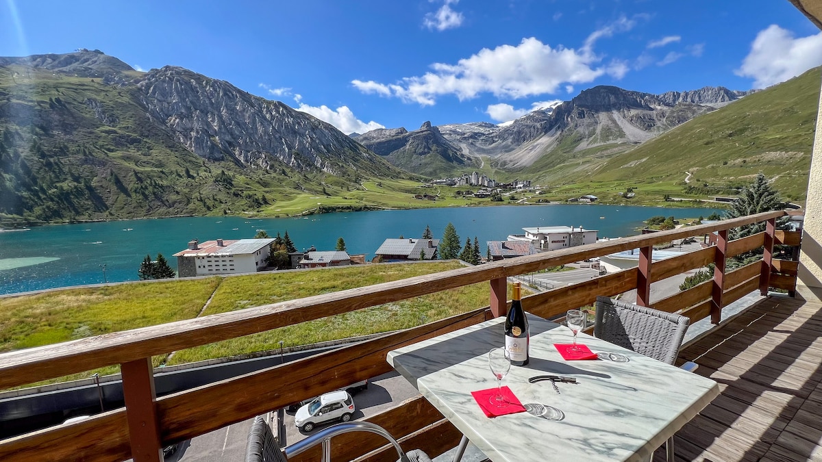 Appartement de charme avec vue panoramique sur le lac et la Grande Motte. Classé 3 étoiles par l'office de Tourisme de Tignes. Situé au centre de la station, à 5 minutes à pied des pistes, et à 50 mètres d'un arrêt de navette gratuite, vous apprécierez la proximité avec le lac et les montagnes. Boulangerie, restaurants, pharmacie et petits commerces à proximité. Parking disponible au pied de l'appartement l’été. Emplacement calme, et balcon avec vue imprenable.