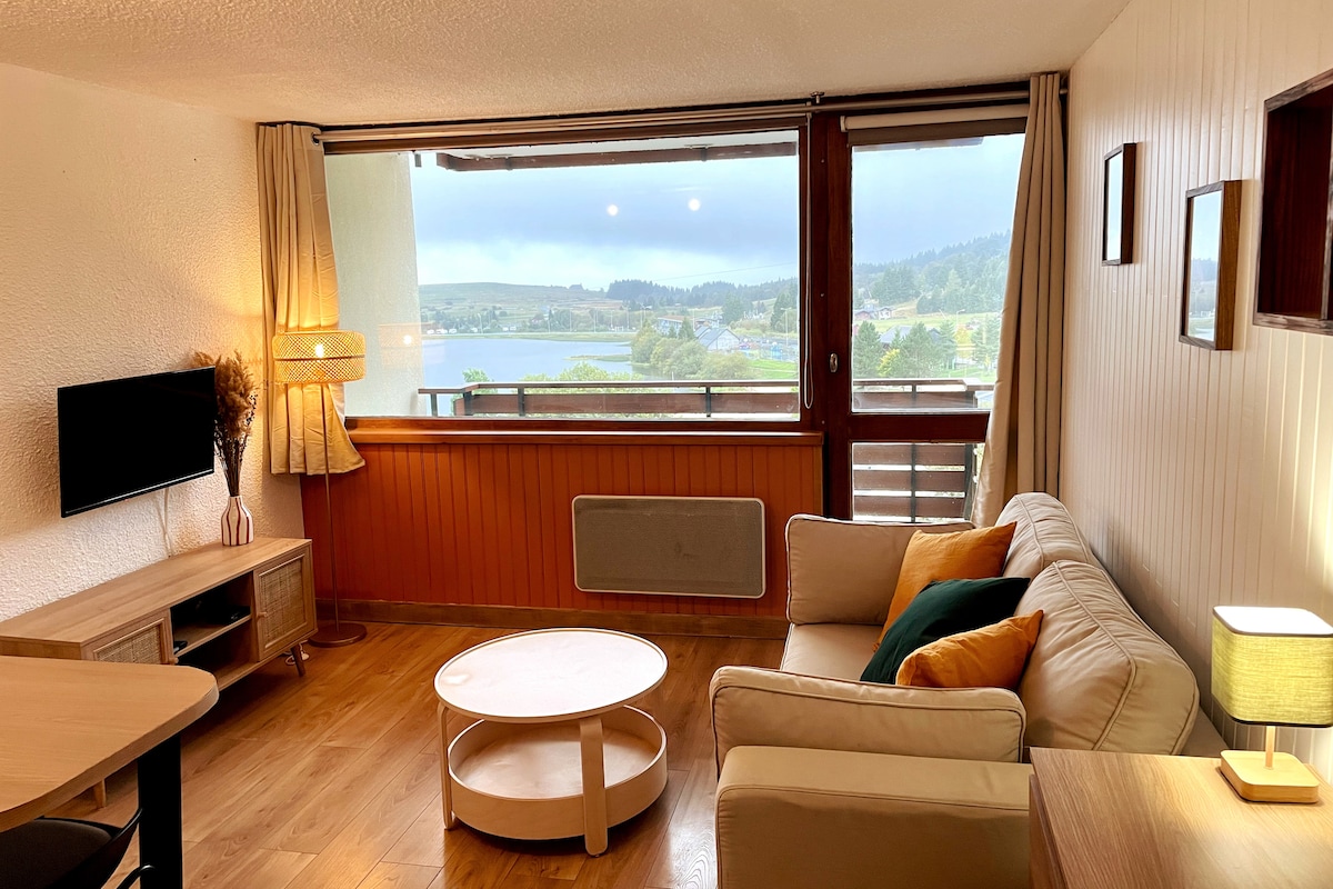 滑雪道脚下的舒适单间公寓,可欣赏湖景