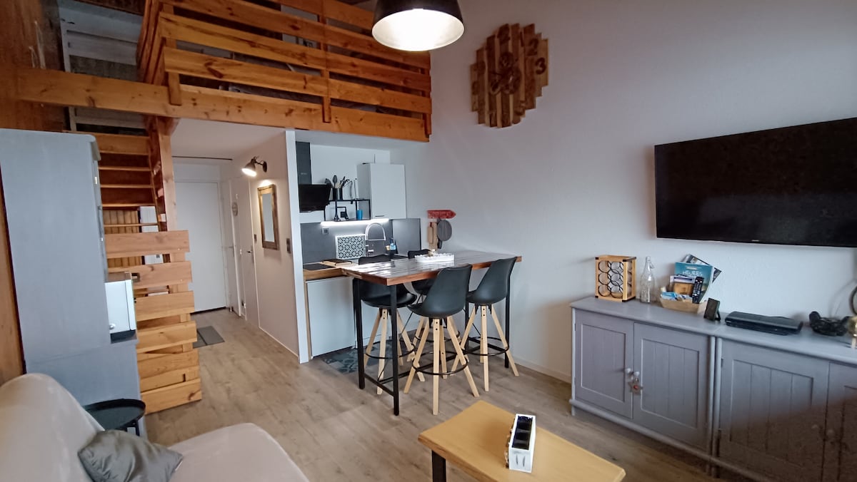 Ce Studio de 32 m2 est idéalement situé dans la station, car proche de tous commerces. Très bien équipé - idéal pour couple avec 2 enfants ! Au rez-de-chaussée coté lac ce logement bénéficie d'un balcon avec une vue imprenable sur la station. Vous pourrez profiter de toutes les activités proposées par la station et randonner à votre guise dans notre beau massif. Idéal pour vous ressourcer le temps d'un séjour. Un local à skis privé est mis à votre disposition. Parking gratuit.