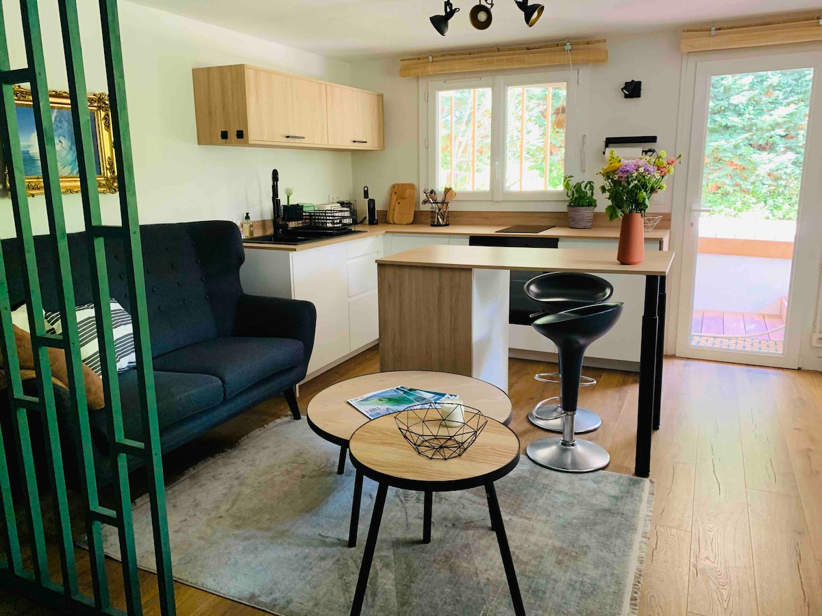 Newly renovated! Very quiet and ideally located in the center of Hossegor with private underground parking, 4 bikes available for free. 40m² (430ft²) apartment with a very nice living room and open kitchen. Large bay window accessing to a terrace with a nice view on the trees. Includes a separate bedroom, a completely renovated fully equipped kitchen (with dishwasher), a bathroom and separate toilet and a terrace with a bar area and a lounge area.
