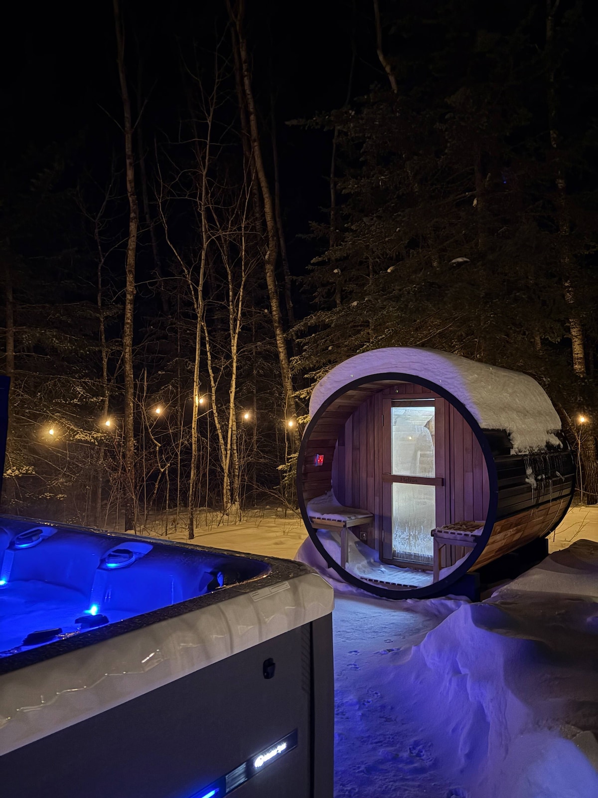 Wood Duck Retreat is a private spa-style cottage escape featuring a hot tub, outdoor sauna, fire table, and traditional fire pit. Enjoy an integrated indoor/outdoor audio system, smart home automation, fast Wi‑Fi, and a fully equipped kitchen. Perfect for romantic getaways or relaxing weekends with friends, just minutes from local lakes and town amenities. Designed for comfort, privacy, and unforgettable evenings under the stars.