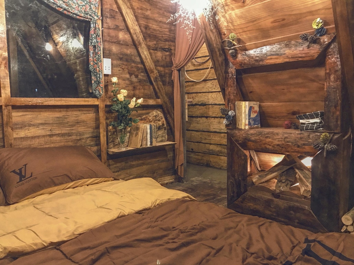 This is one of our most loved wooden houses – a cozy retreat embraced by nature. The cabin features a spacious 2-meter-wide bed with a stunning view overlooking the entire garden. Guests can enjoy a truly relaxing stay, taking in the peaceful surroundings and experiencing the authentic charm of Dalat — quiet mornings, fresh air, and a garden in full bloom right outside your window.