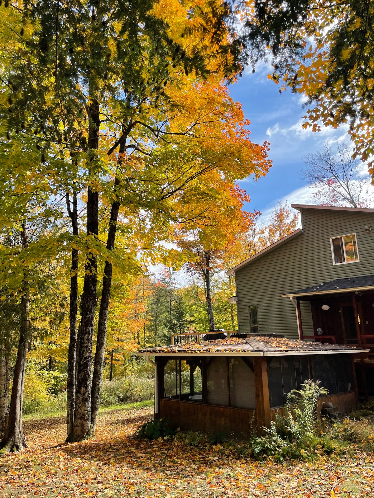 Welcome to La Khabine! This cozy, modern cabin comes with all you need to relax and connect with nature. Enjoy a glass of wine with the sound of a crackling fire in the wood burning fireplace. Take in the view of the forest through the surrounding floor to ceiling windows. Relax in the private outdoor cedar barrel sauna. Natural self-care products, firewood, laundry soap, and high-speed Wi-Fi are all complimentary. We hope you'll love our little cabin of windows as much as we do :)