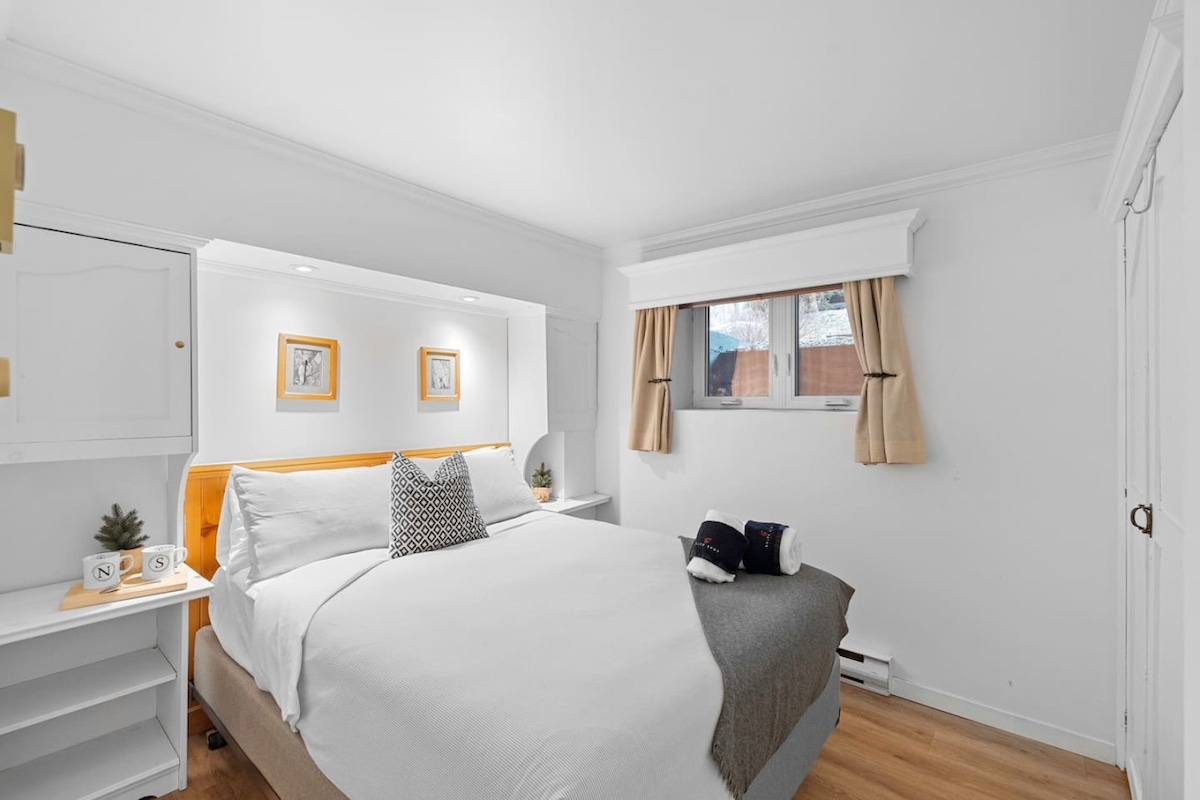 Ce magnifique studio de 340 pieds carrés est situé dans le vieux village de Mont-Tremblant. …..Fermeture …..de la piscine le 25 septembre le spa 15 octobre Tout rénové et redécoré, entièrement équipé ( cuisine complète) est parfait pour une escapade romantique! De nombreux restaurants et boutiques ainsi que la plage du lac Mercier se trouvent à moins de 10 min à pied.Le suberbe mont tremblant est à seulement 8 minutes en voiture.ainsi qu' une superbe piscine et spa.