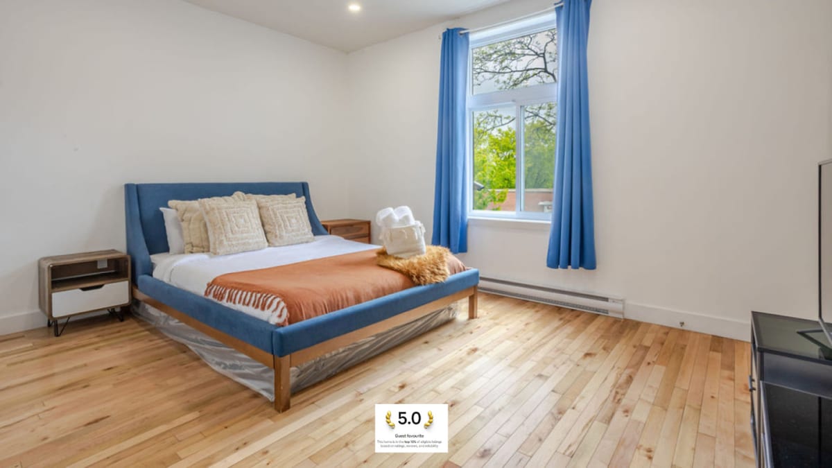 Stay with us and enjoy; ✔️ Exclusive access to a chic 2-floor unit, 1 bedroom per floor for added privacy ✔️ Located in one of the city's most coveted neighborhoods. ✔️ Steps from Jean Talon Market, cafés, restaurants & more ✔️ Front & back rooftop terraces offering breathtaking views ✔️ 5-10 minute stroll to the Beaubien Subway Station, providing quick access to downtown in just 15 min ✔️ Fully equipped kitchen with a coffee & tea station for your enjoyment ✔️ Easy access to street parking