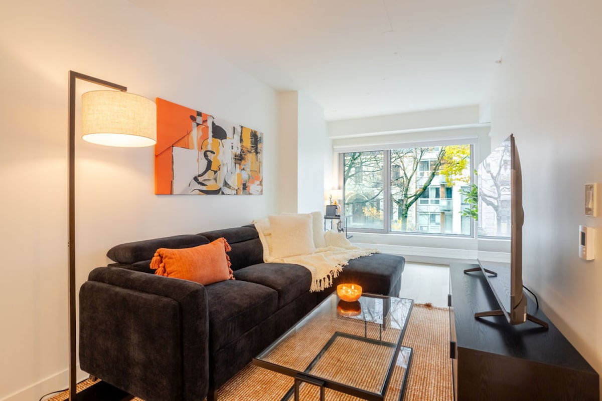 Welcome to our stylish, thoughtfully designed apartment in the heart of Old Montreal. Ideal for couples, families, or business travelers seeking comfort in one of Montreal’s most iconic neighbourhoods. Just steps from the Old Port, cobblestone streets, cafés, and major landmarks. The building is peaceful and secure. Place-d’Armes and Square-Victoria metro stations are within walking distance for quick access to downtown and the rest of Montreal.