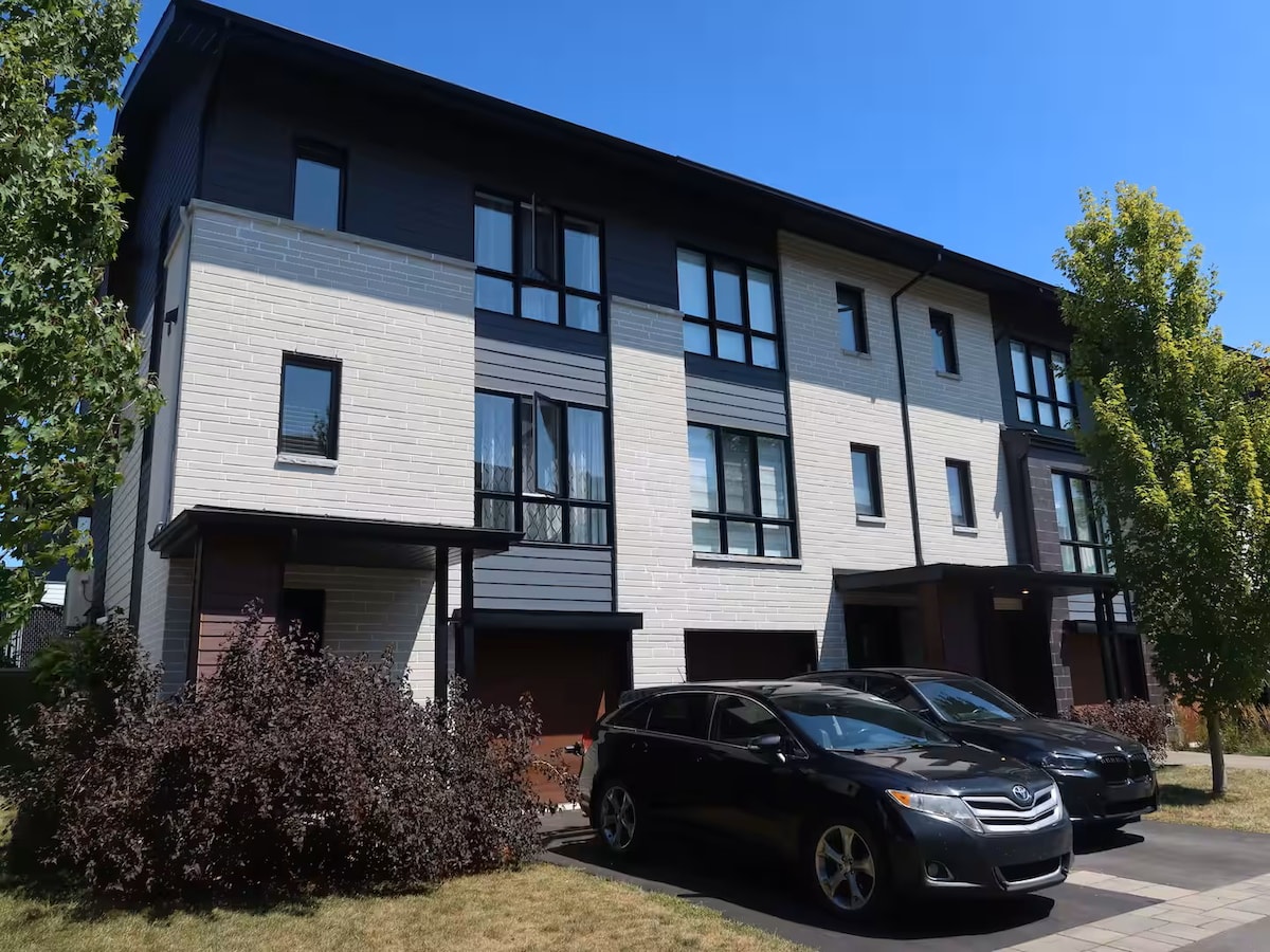 UPDATED 2024! This warm modern corner unit townhouse is perfect for your family Or professional. Furnished with High end furniture, blackout blinds, dimmers on all the lights and a fully functional kitchen with all cooking tools needed to make a great meal. Close to all amenities and 15 min from downtown Montreal. Backyard to a bike path and views of the the Saint-Laurence river.