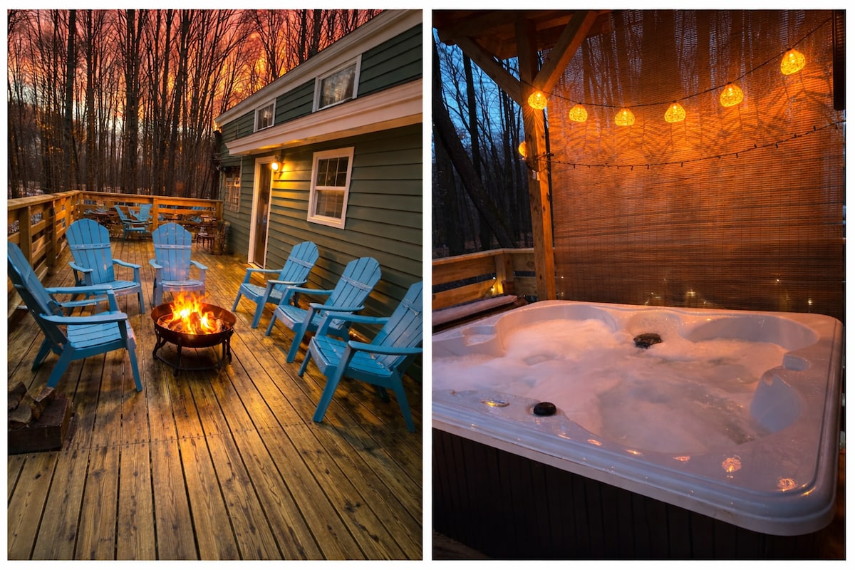 A stunning chalet ideally situated in the Pocono mountains. Your destination for a weekend escape or a longer stay all year round! Outside one can enjoy a natural setting in a beautiful 1-acre private wooded property, hot tub, two fire pits, a deck for morning coffee, or a delicious BBQ. Our home offers a tranquil interior atmosphere and home is conveniently located near all Pocono Mountains' seasonal activities. Whether you want to unwind or recharge, our home provides the perfect retreat.