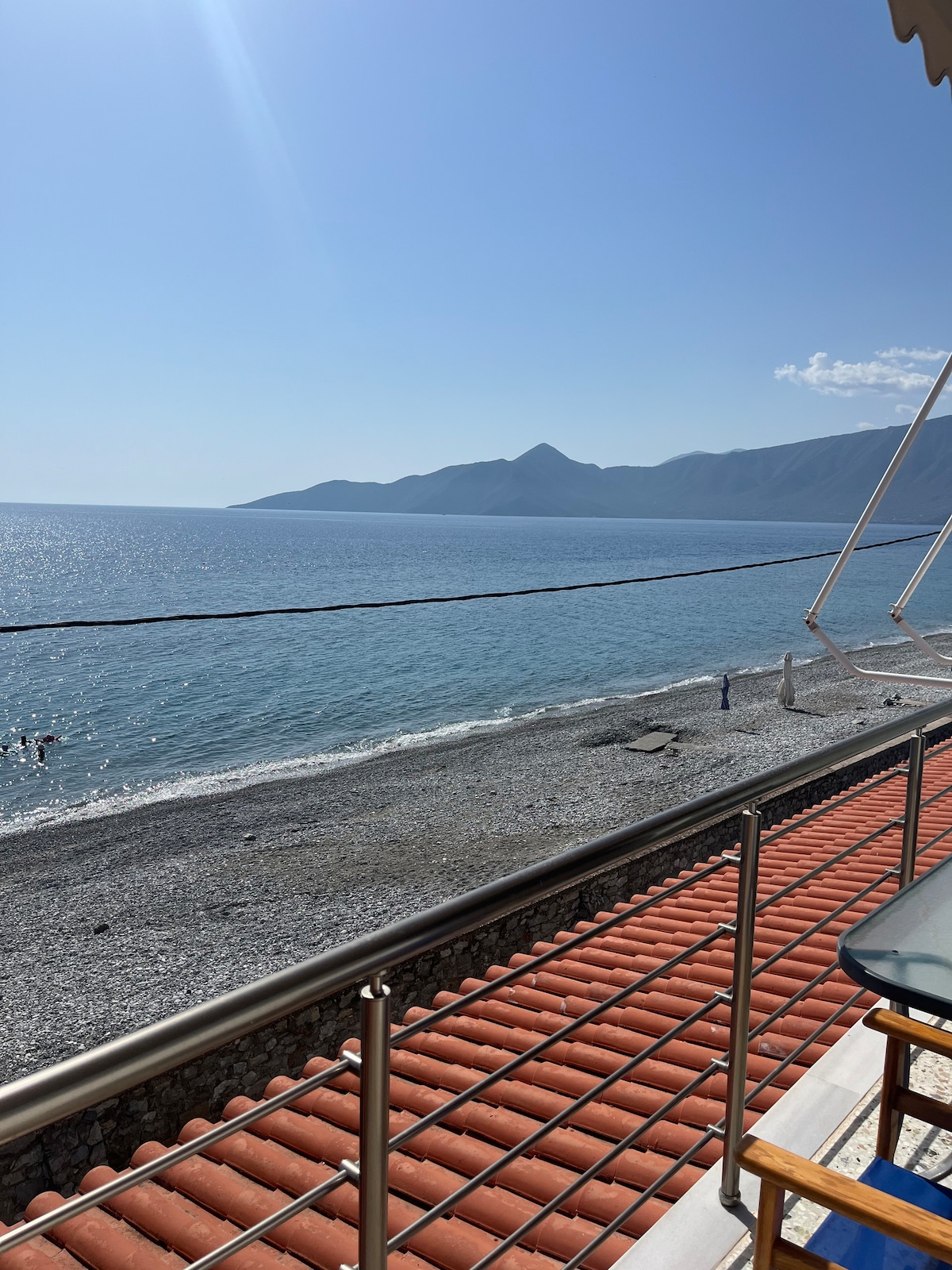 Στούντιο με θέα τον Μεσσηνιακό κόλπο και τους πρόποδες του Ταΰγετου. Κατάλληλο για καλοκαιρινές διακοπές αφού βρίσκεται στην παραλία Καλαμάτας! Με τη θάλασσα ακριβώς δίπλα και πολλές επιλογές για φαγητό, καφέ και ποτό. Το κέντρο της πόλης βρίσκεται σε κοντινή απόσταση (στάση λεωφορείου ακριβώς έξω από το σπίτι). Ιδανικό για ζευγάρια και μοναχικούς επισκέπτες. Παρέχονται δωρεάν δυο ποδήλατα για βόλτες στον ποδηλατόδρομο της πόλης.
