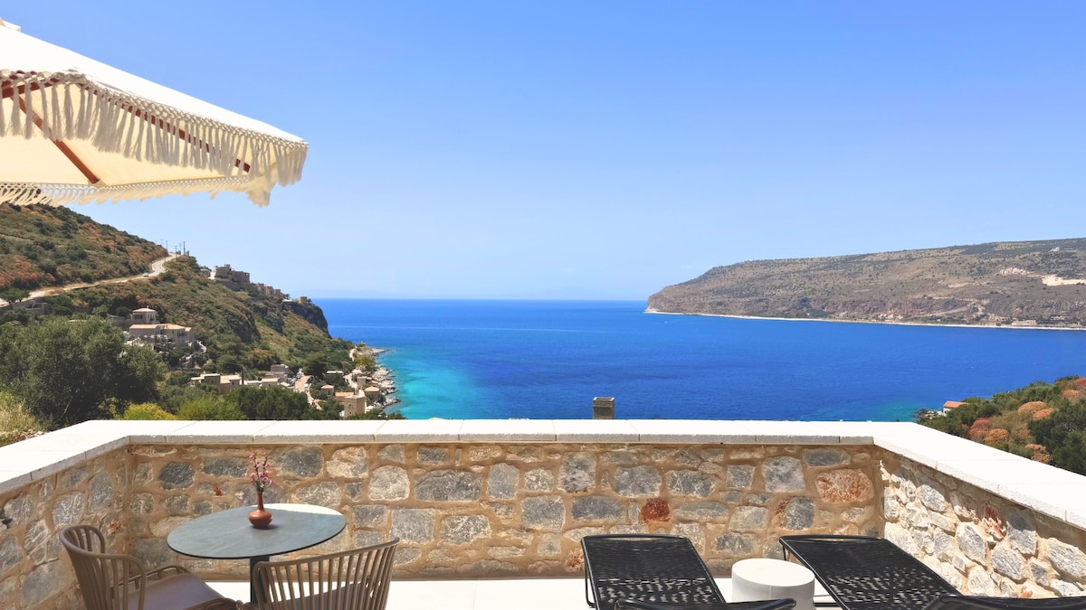 Brand new AirBnB "Eleonas Limeni" just 8 minutes walk from Dexameni beach and Limeni with its tavernas and bars. ☞ Small accommodation with only 5 flats, lots of privacy ☞ Individually furnished modern flats ☞ English-speaking support on site from the host ☞ Use of the shared heatable infinity pool Please note: Due to local conditions, children are only welcome from the age of 8.