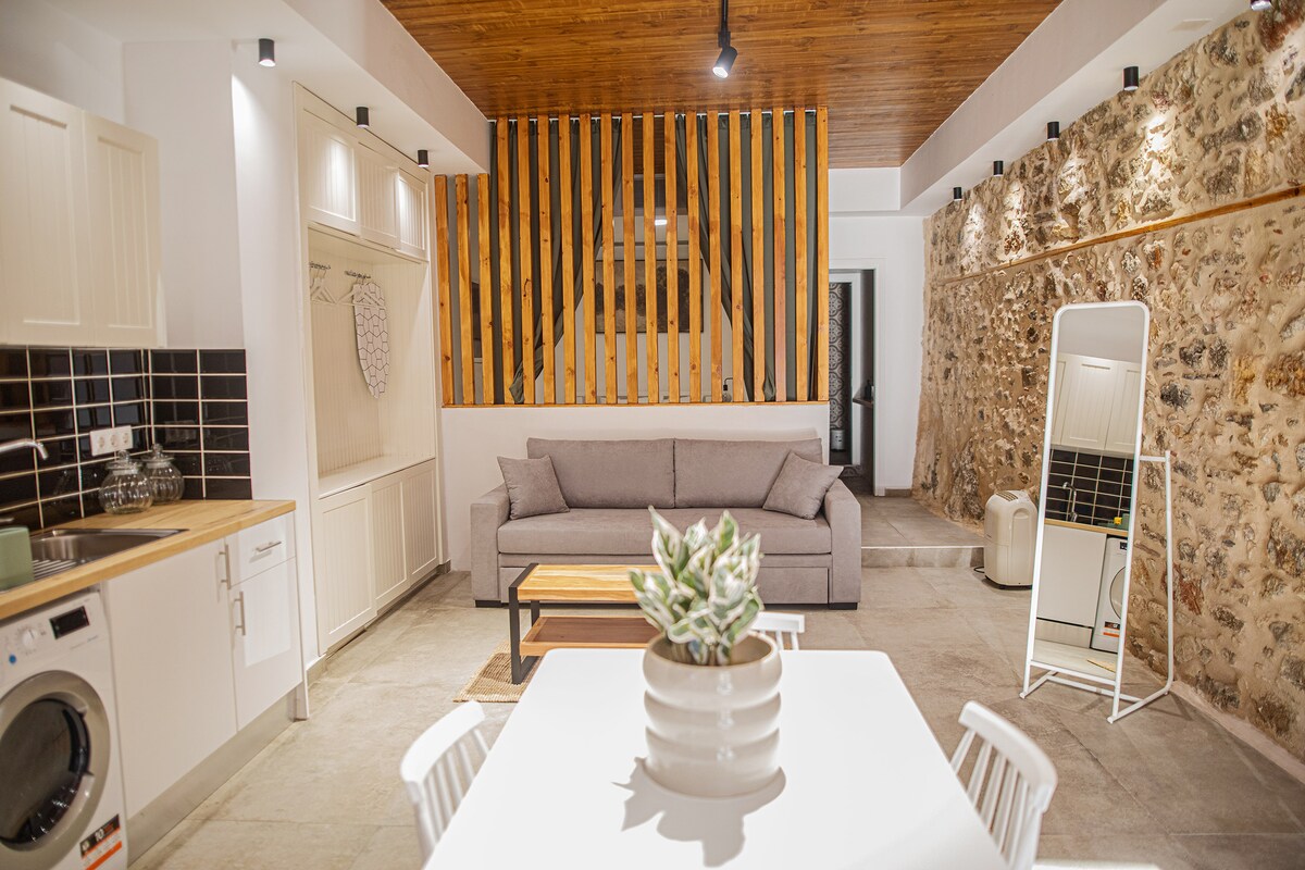 A trip through history in the powerful medieval fortress of Monemvasia. This 44 square meters maisonette, which is part of my –late 19th century– family's home features a bathroom, a kitchen, and a large –panoramic– terrace with a staggering view of the Myrtoon Pelagos and the town itself.