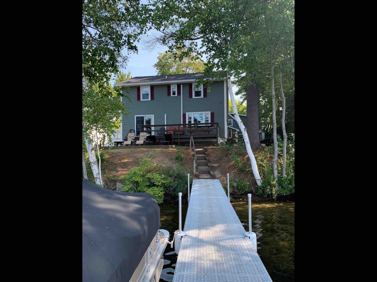 Waterfront lake house w/ 1500 SF, 3BR, 2BA,open concept living room+kitchen+lower level is the perfect destination for your next getaway. Central Lakes Region location, our home features new modern coastal furnishings, expansive deck + patio overlooking stunning views of the lake. Enjoy private dock for fishing, gradual walk out beach area, s'mores around the firepit, kayak, canoe, paddle board, ice skate, ice fish+ skiing. Perfect for families/romantic getaway-all seasons.