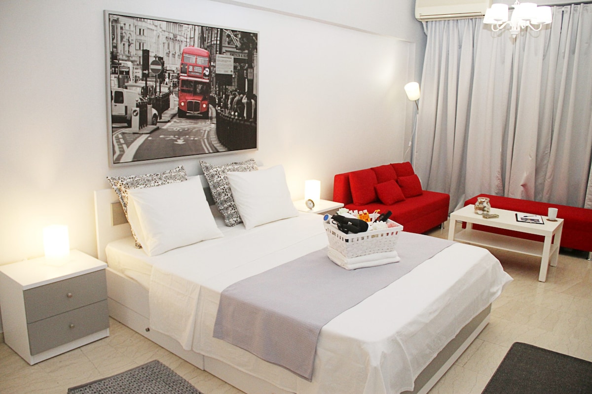 -Located at the very center of Thessaloniki,at Mitropoleos Street,where everything you need is 2 minutes away by foot. -Easy access to all major means of transportation (taxi, bus) -Inverter A/C unit for heat/cold -Hotel style bathroom -High quality mattress,pillows and sheets -Iron/ironing board -Room darkening curtains and blinds -Even though it is located in the heart of the city,the place is adequately soundproofed from external noises -Perfect for couples,lone travelers,friends and families