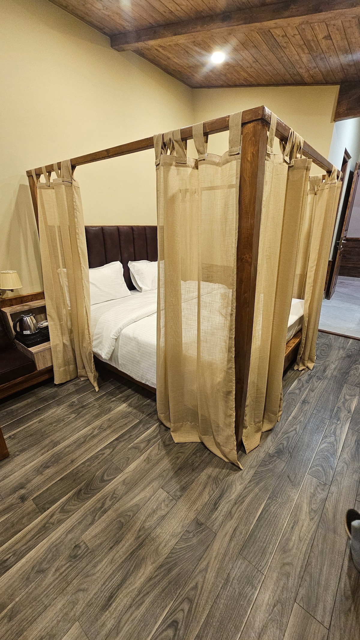 Nestled in the heart of Dalhousie Valley, this Airbnb listing offers a perfect haven for honeymooners with breathtaking mountain views. The well-appointed rooms feature a plush king-sized bed, a cosy seating area, and a modern bathroom with a geyser and shower. Guests can enjoy their favourite shows and movies on the smart TV or connect with high-speed internet.