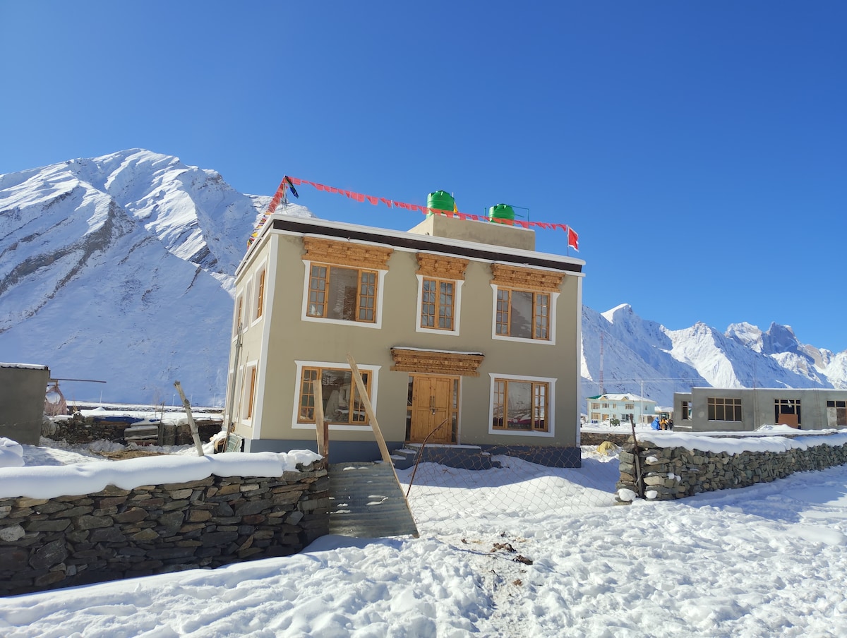 Peaceful riverside home in Kargil with stunning Suru River views. Spacious 5–6 rooms, kitchen, optional home-cooked food, Wi-Fi, washing machine, and ample parking. Enjoy a lush garden, kitchen garden, and apricot trees. Just 2 minutes from the market yet quiet and serene—perfect for relaxing in nature’s beauty and comfort.