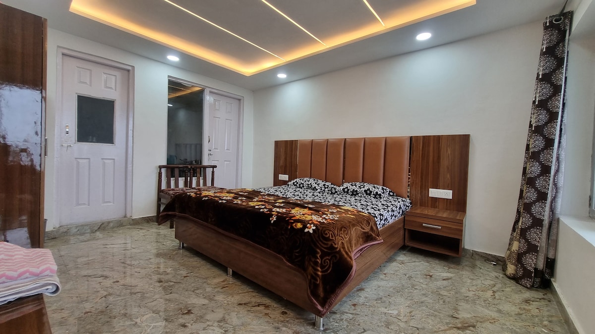 Welcome to Taj Guest House, a family-owned homestay on Palace Road, just a 10-minute walk from Leh Main Market. Our spacious property features four bedrooms, two bathrooms, a modular kitchen, and a cozy lobby. Enjoy smart TVs, unlimited Wi-Fi, free SUV parking, and a lush garden. Owned by a former bureaucrat's family, our home combines modern comforts with traditional hospitality. Perfect for exploring Leh or relaxing in a peaceful setting. Book your stay with us today!