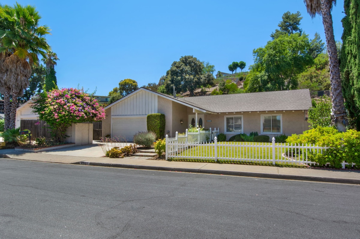 Our spacious family home has been recently remodeled and includes a large yard, spa, outdoor entertaining space, gourmet kitchen, views galore AND super comfortable beds! It is ideally located only 2 minutes from major freeway and is central to every SoCal attraction: beaches -- 10 minutes; Disney -- 30 minutes; SD Zoo & Legoland 45 minutes. Close to high-end shopping & restaurants. This is the perfect hub for you and your family.