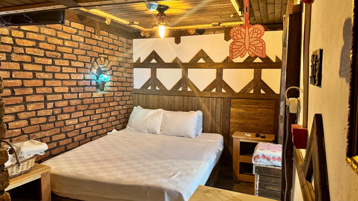 Şirince Kirke Hotel 市中心带石头壁炉的房间