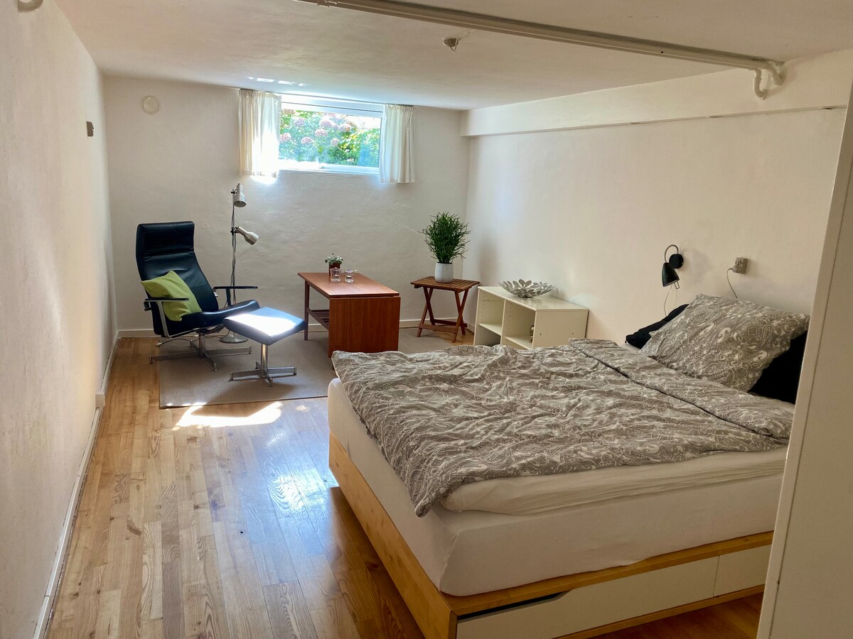 Velkommen - tag en pause, og slap af i vores hyggelige grønne oase. Du får din helt egen lille "lejlighed" med egen indgang, et mindre køkken med spiseplads til fire personer, eget badeværelse og et rummeligt soveværelse med dobbeltseng (140x200), sofa, tv og arbejdsplads. Derudover må terrassen og havens diverse hyggekroge gerne nydes og bruges.