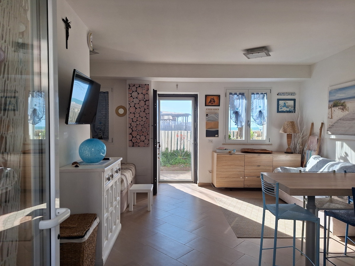 Apartment right on the beach, breathtaking sea view, in Focene (Fiumicino) 10 minutes from L. Da Vinci airport, and 28 km from EUR Fermi Metro Station offers accommodation with free WiFi (Netflix and Prime video included), air conditioner, garden and a wonderful terrace with barbecue, table, chairs, sunbeds. Direct access to free bathhouse with restaurant. Beds for 3 people, 1 bathroom, bed linen, towels, a flat-screen TV, a dining area, a fully equipped kitchenette, and a patio with sea views.
