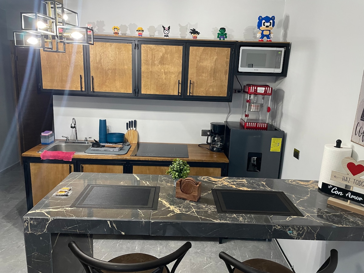 Rodeate de un espacio muy Chic! En este Loft Moderno y cómodo, estilo minimalista, equipado y acondicionado con todo lo necesario para una placentera estancia y Home Office en Colonia privada. Loft Ejecutivo totalmente independiente, Cerca del Aeropuerto Internacional y de la zona Industrial de Apodaca. Estacionamineto libre Frente a parque, 2 supermercados a 100 metros de la colonia y minisuper dentro de la colonia, Cerca de centros comerciales!, Vecindario tranquilo y seguro