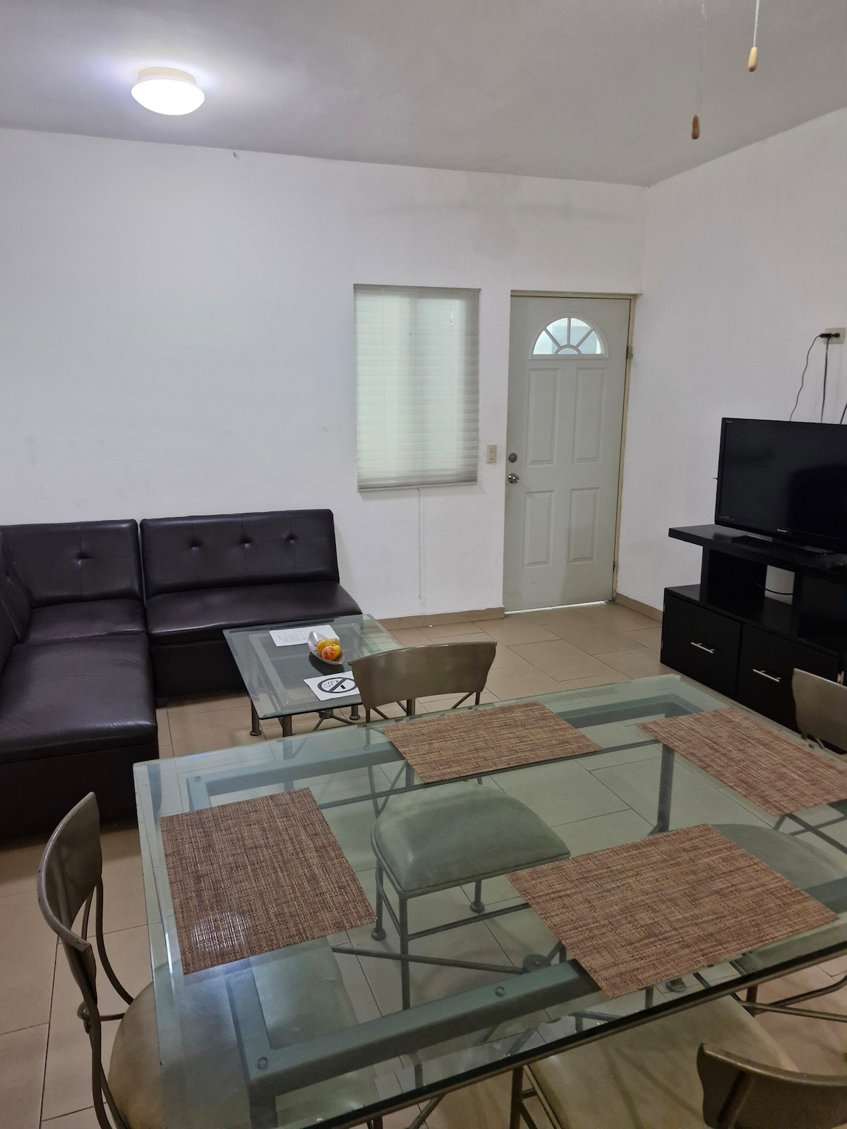 ¡Bienvenido a tu hogar en Apodaca! Esta espaciosa casa de 3 habitaciones es perfecta para grupos o familias que buscan comodidad, tranquilidad y un espacio ideal para trabajar y/o descansar. 3 habitaciones climatizadas, espacio amplio y cómodo: sala, comedor y cocina totalmente equipada para que te sientas como en casa. Estación de trabajo con escritorio, perfecta para nómadas digitales o quienes necesitan concentrarse. Asolo 10-15 minutos en auto del Aeropuerto Internacional de Monterrey.