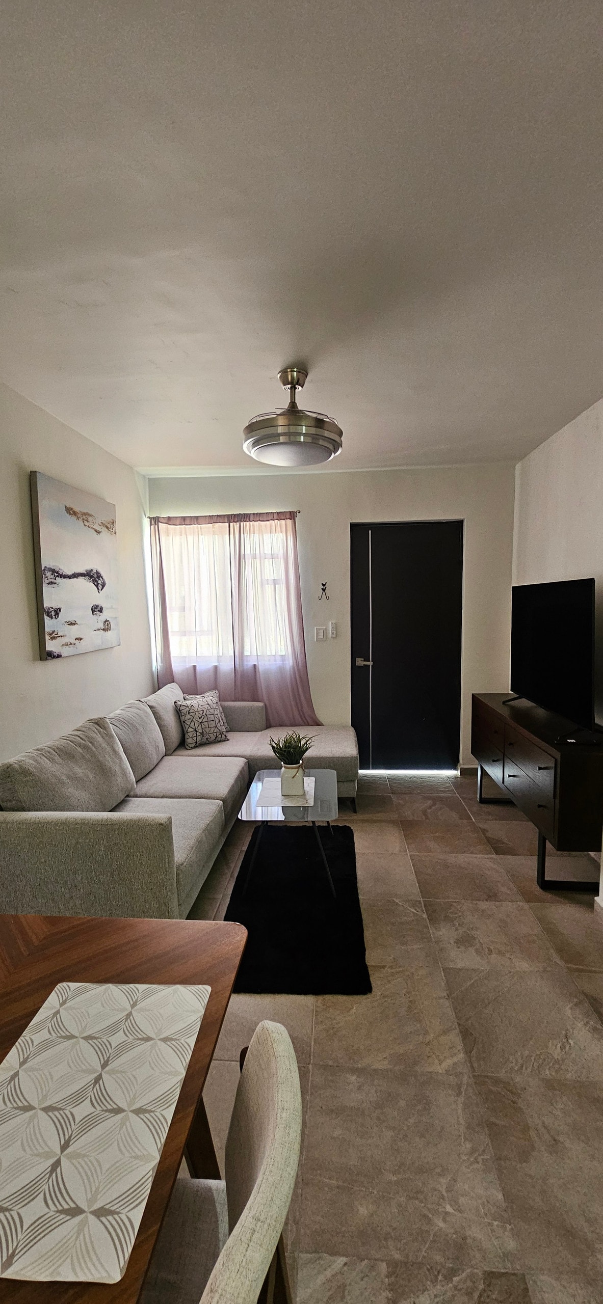 Bonito y amplio departamento cerca de Aeropuerto de Monterrey. El lugar es muy amplio, cuenta con sala, cocina, comedor, una recamara, baño completo y terraza con asador. - 10 min al Aeropuerto - 10 min al centro de Apodaca - 15 min a Pesquería - 20 min al centro de Monterrey