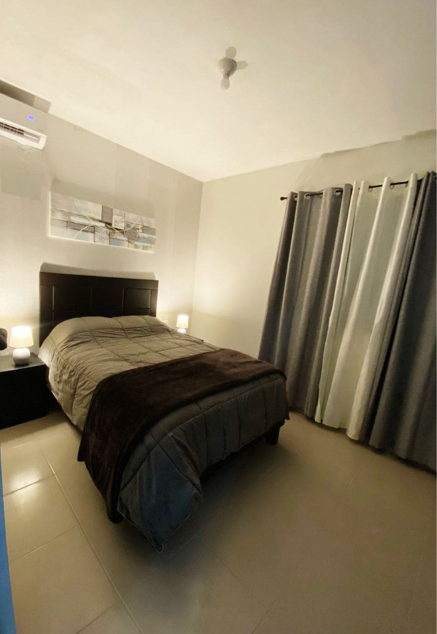 Alojamiento entero a 15 minutos del aeropuerto, cómodo y seguro, colonia privada y con acceso controlado. El alojamiento cuenta con 3 habitaciones de las cuales solo una está habilitada para huéspedes y el resto son de almacenaje, un sofá cama en la sala para una persona extra.