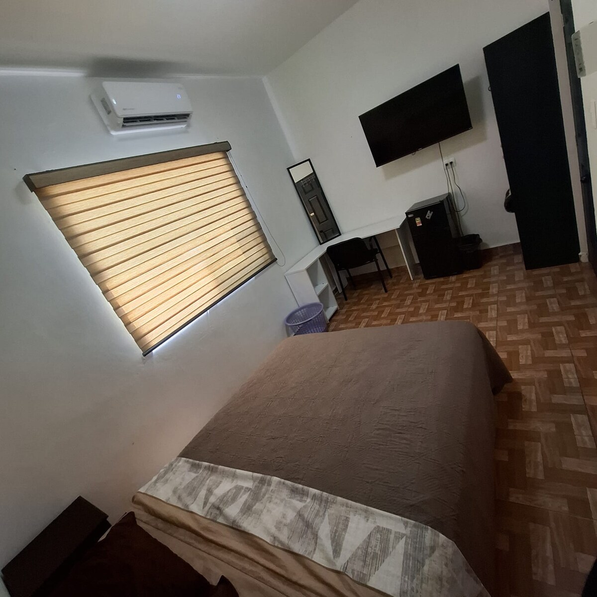 Habitación con entrada independiente en fraccionamiento privado, excelente opción si requieres estar cerca del aeropuerto ya que solo está a 10 min., 10 min de restaurantes y 15 min de plazas comerciales. Muy cerca de diferentes zonas industriales, ideal para viajes de negocios, vacacionar o simplemente relajarse. Cuenta con baño privado, clima para tu mayor comodidad. Es una zona y fraccionamiento muy tranquilo y seguro.