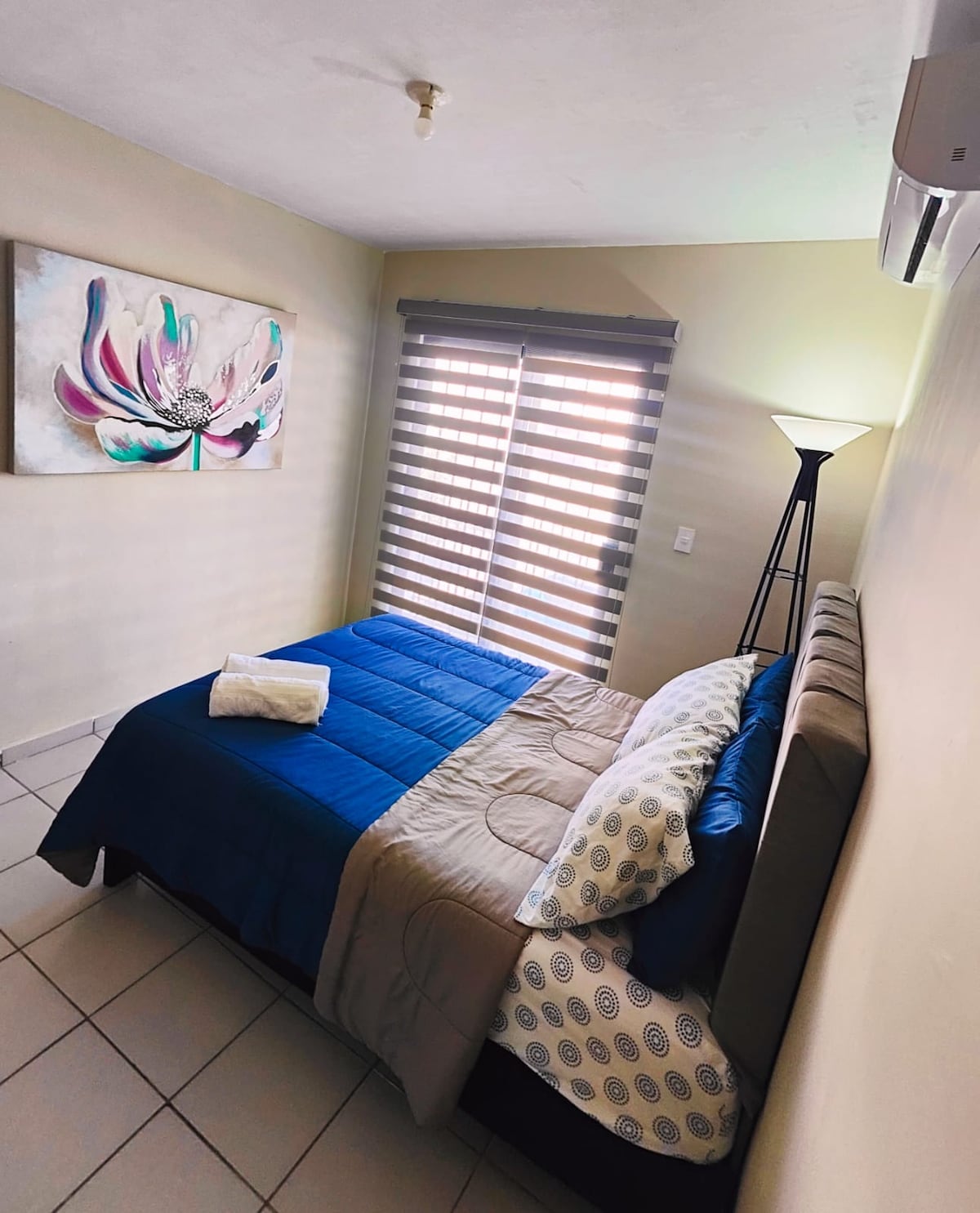 Bienvenidos a nuestro amplio y tranquilo departamento, ubicado estratégicamente en el corazón de Apodaca. Perfectamente situado cerca del área industrial, el aeropuerto internacional y una gran variedad de comercios, este espacio ofrece la combinación ideal de comodidad y conveniencia. Con áreas generosas y una decoración moderna, cada rincón está pensado para ofrecer una estancia relajante y acogedora. La recámara cuenta con un ambiente climatizado para tu descanso. Será un gusto recibirte.