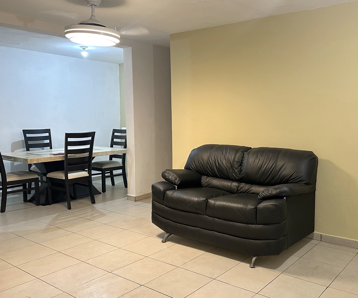 Departamento independiente , privado, en planta alta, habitación para dos personas en fraccionamiento privado. Recién remodelada y equipada con lo necesario para una cómoda estancia vacacional o de trabajo. Con accesos controlados, guardia de seguridad y estacionamiento. Ubicada estratégicamente entre el Centro de la Ciudad y el Aeropuerto Internacional Mariano Escobedo. Caminando se llega a Liverpool "Paseo La Fe".