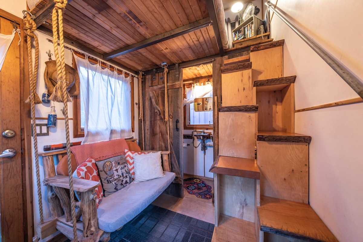 This tiny house is all set for your next visit to Austin! Located within a few blocks of UT, Moody Center and football/ baseball fields and DT, you'll love this central spot. Walk to dozens of restaurant options along Manor Road or bike to town and cruise the hike and bike trails with my bikes! Tiny pad can accommodate 2 persons MAX. Has AC, shower, potty, kitchen, bed and a few surprises! You'll love this hip spot and want to return for all your visits. BIG AND TALL may not fit in bathrm