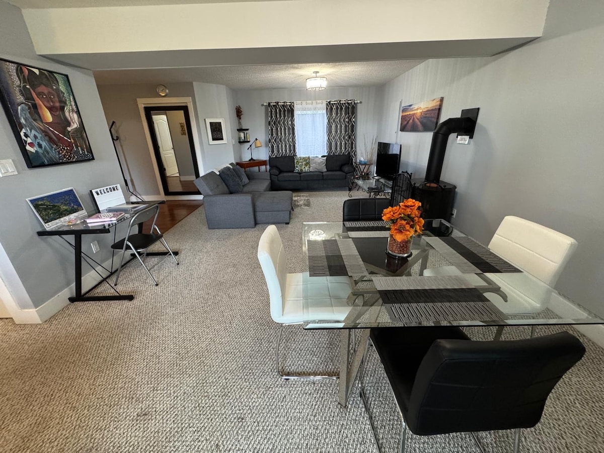 Welcome to our cozy, one-bedroom private 1000+sq ft suite. Perfect for remote work or long stays: living, dining areas, desks, reliable Fast WiFi 643Mbps, 55” LG Smart TV, gas fireplace, sofa bed, 2nd sofa, covered deck, private fenced yard with partial ocean view. Spacious bedroom with one queen and a twin bed, full bathroom/shower. Free parking, washer/dryer, 2 e-bicycles for use. Pet friendly: small to medium-sized well-behaved dogs preferred. Prov#H152939652 Muni licence #0010785